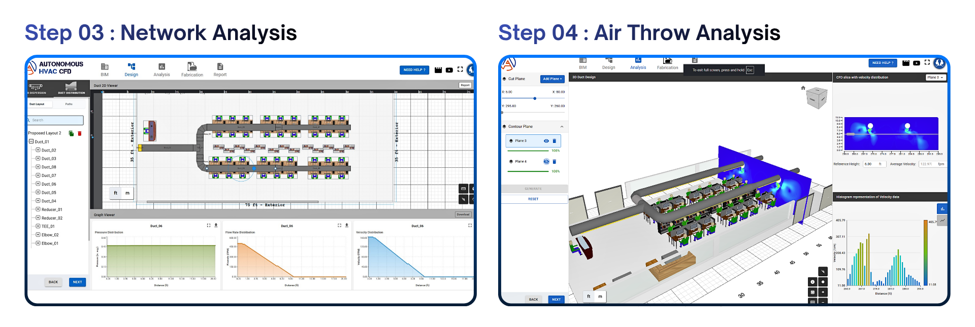 • Air Throw Analysis - Assessment and optimization of air reach to ensure effective coverage and occupant comfort