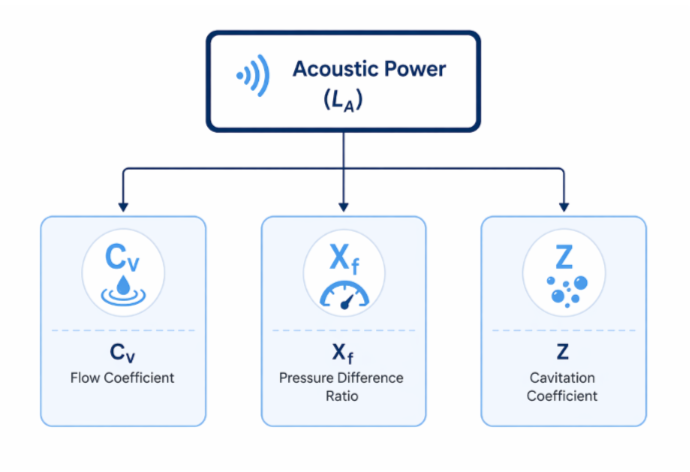 The standard provides separate formulations for cavitating and non-cavitating flow conditions and is used to calculate the Acoustic Power (LA) using the following inputs: