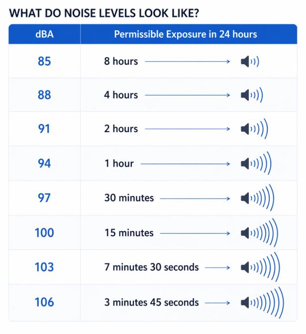 Non - compliance with OSHA and international noise regulations
